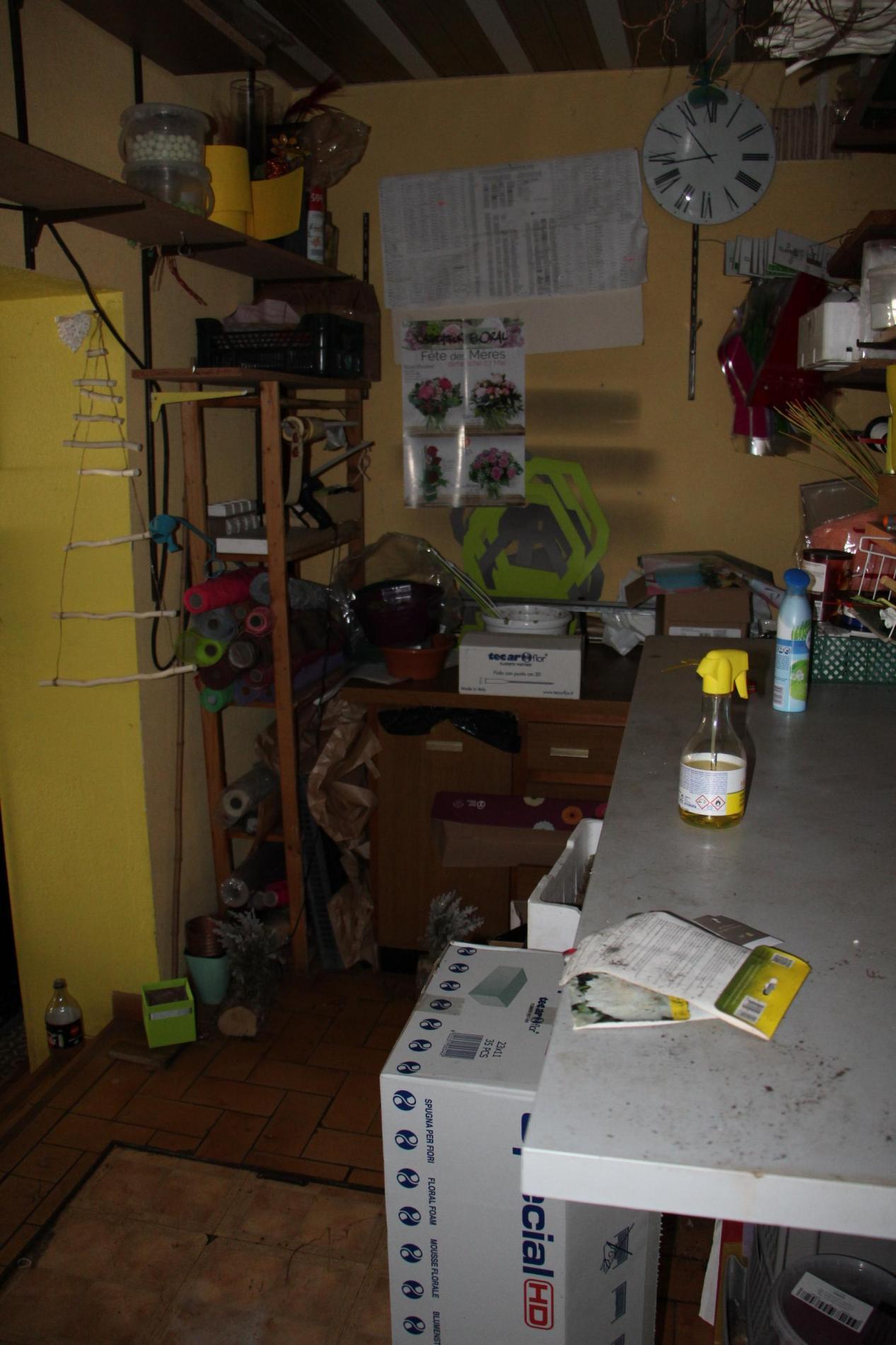 Eléments de décoration, agencement, petit mobilier d'un magasin de fleurs